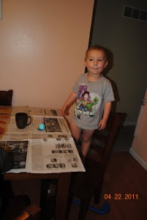 Friday 4/22/2011 daycare was closed and I was off work. I spent the entire day with the kids and was able to get a lot of things done around the house. They were so good. Matt and Mike actually took naps in their bed. I was happy about that. We dyed eggs when they woke up and then they went straight into the bathtub to get the dye off their hands. Danny had it the worst. They had a good time.